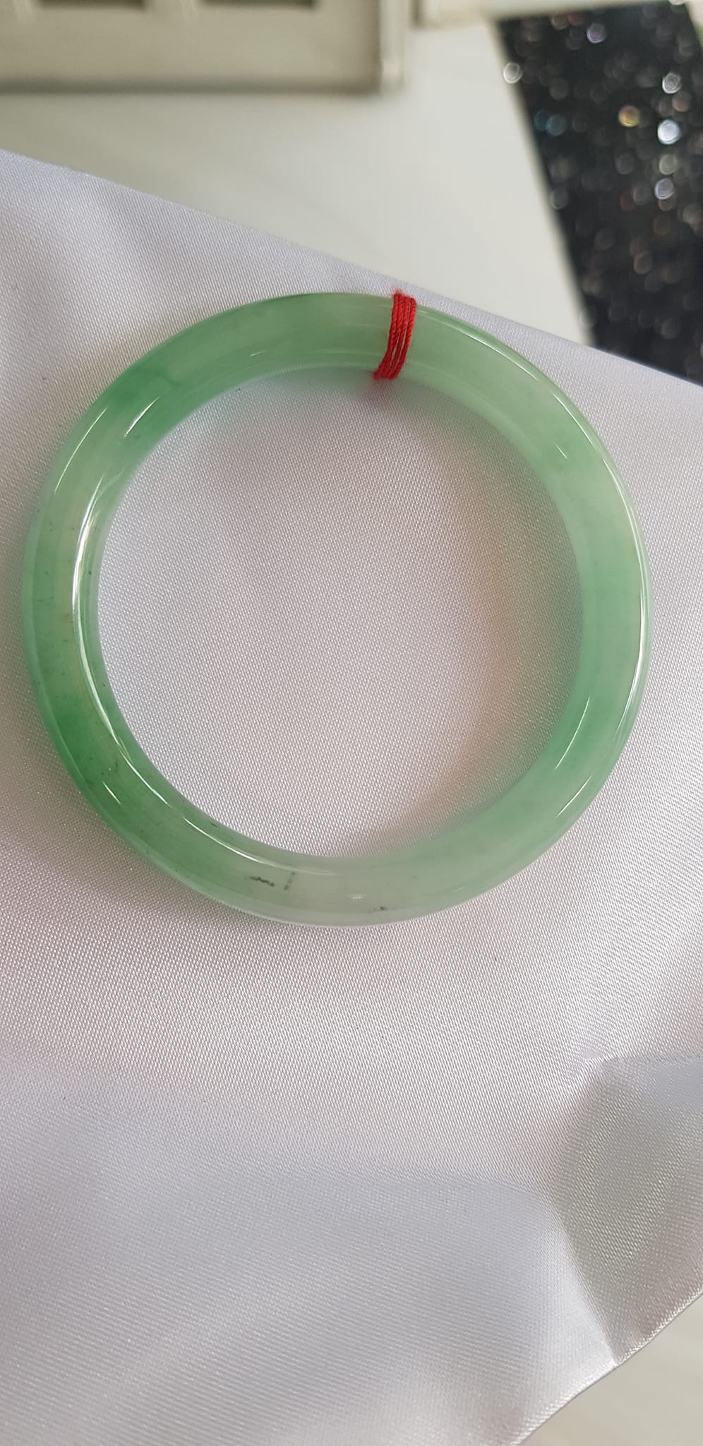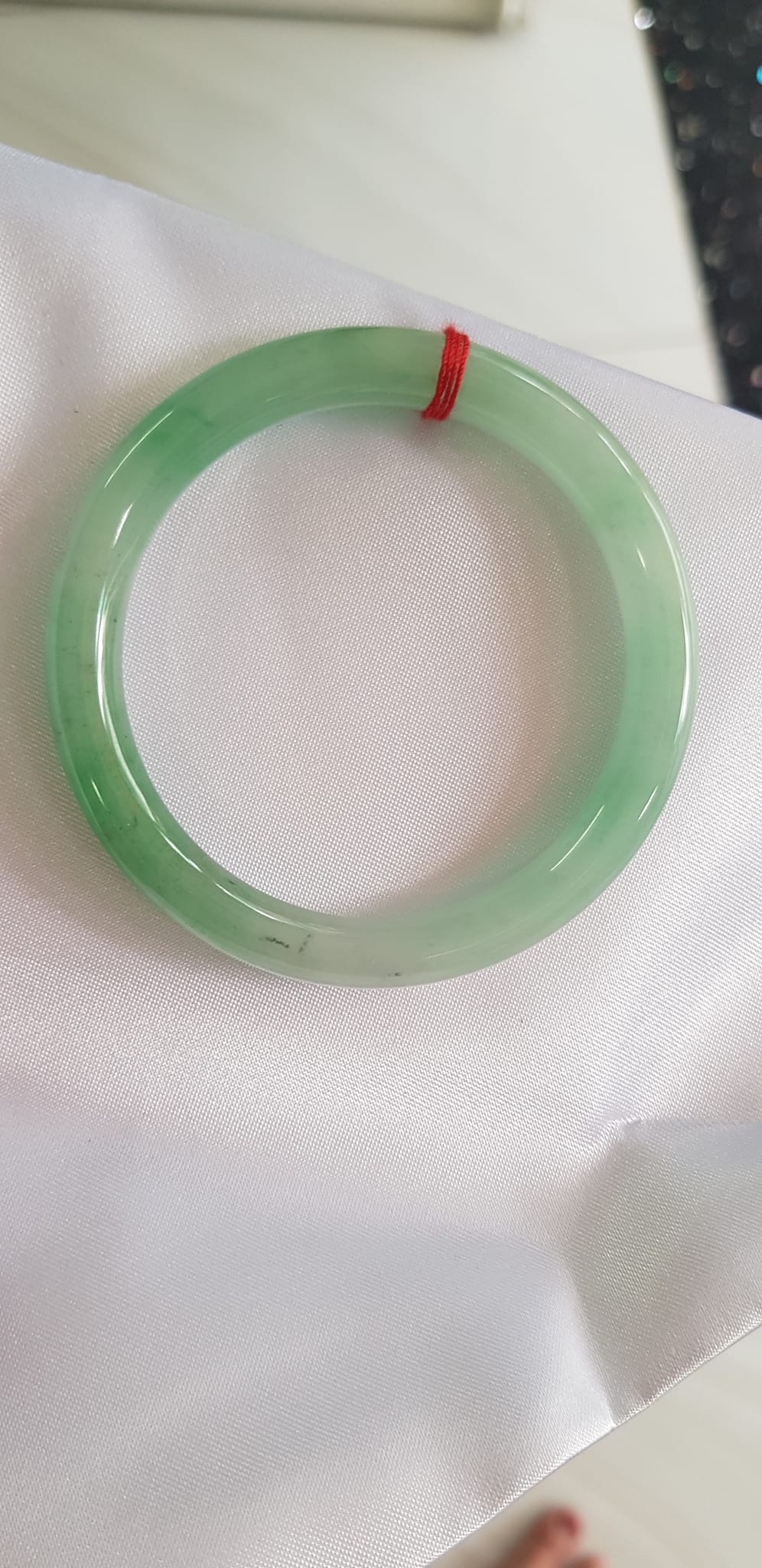 Vòng cẩm thạch Ngọc Đẹp Lý A SỊN 50mm x 7mm tự nhiên màu xanh ngọc bóng điểm xanh nữ 50kg - 54kg ạ