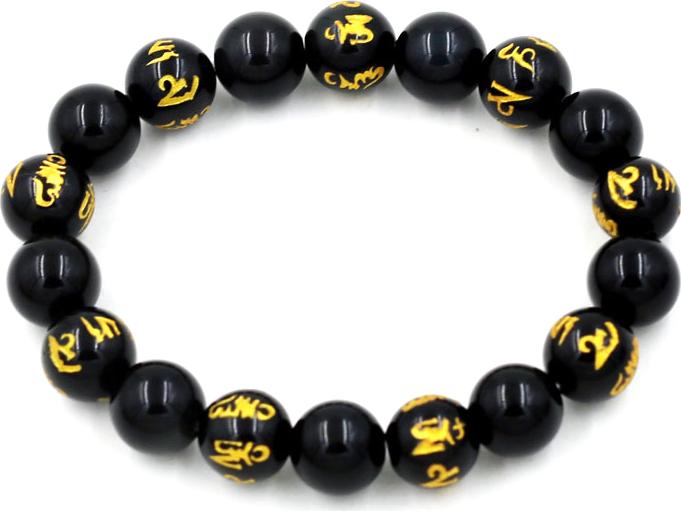 Vòng chuỗi gồm sự kết hợp giữa thạch anh đen mạ-vàng "lục tự kim ngôn" và thạch anh đen, là sản phẩm Phật giáo mang ý nghĩa an khang.