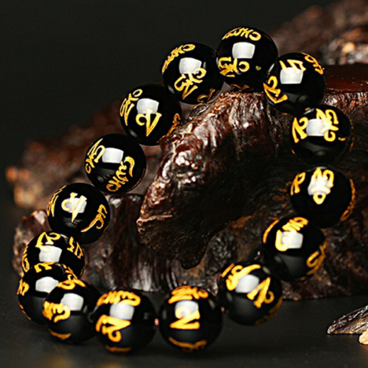 Mua tại TiktokVÒNG TAY ĐÁ MÃ NÃO ĐEN KHẮC OM MANI PADME HUM