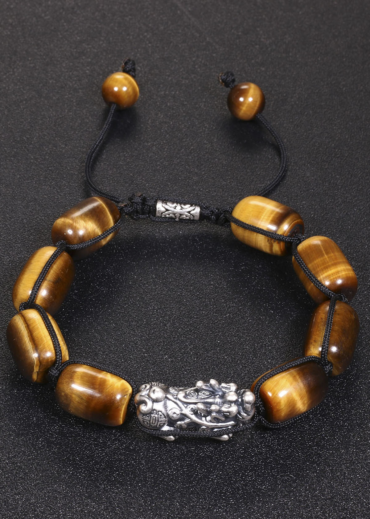 VÒNG TAY ĐÁ MẮT HỔ LU THỐNG MIX TỲ HƯU BẠC: Đá Mắt Hổ có tên khoa học là Tiger Eye, là một loại tinh thể biến chất có màu sắc từ vàng, nâu đỏ đến xanh đen, bề mặt đá có hiệu ứng ánh sáng song song đặc biệt vô cùng bắt mắt. Vòng tay Đá Mắt Hổ từ xưa đến nay luôn là một vật phẩm phong thủy được nhiều người tin tưởng, đại diện cho sức mạnh và tài lộc với vẻ đẹp mạnh mẽ và ẩn chứa nguồn năng lượng dương tích cực. CÔNG DỤNG VÀ Ý NGHĨA CỦA ĐÁ MẮT HỔ: