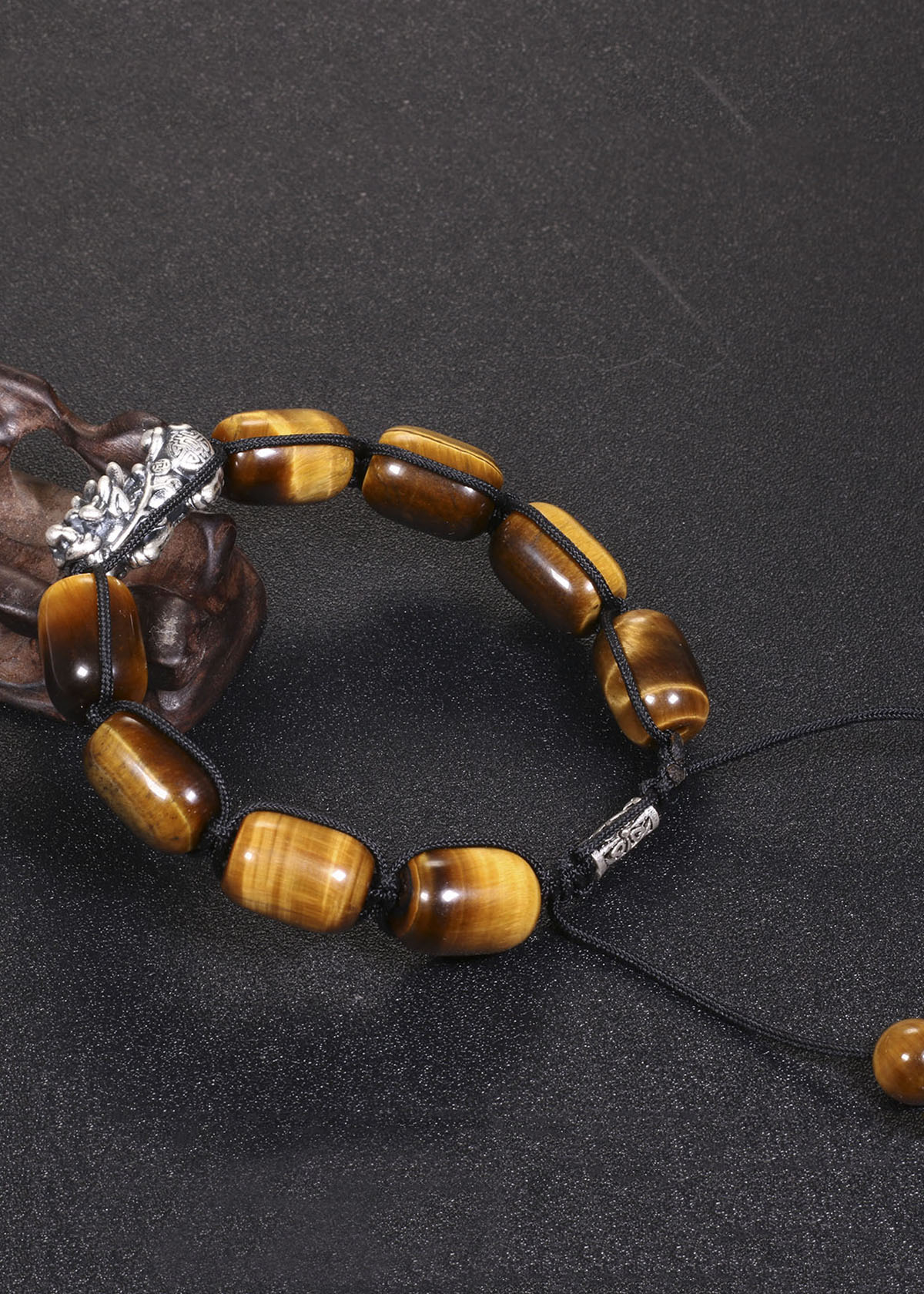 Vòng tay đá mắt hổ vàng tươi 10mm nam mix tỳ hưu