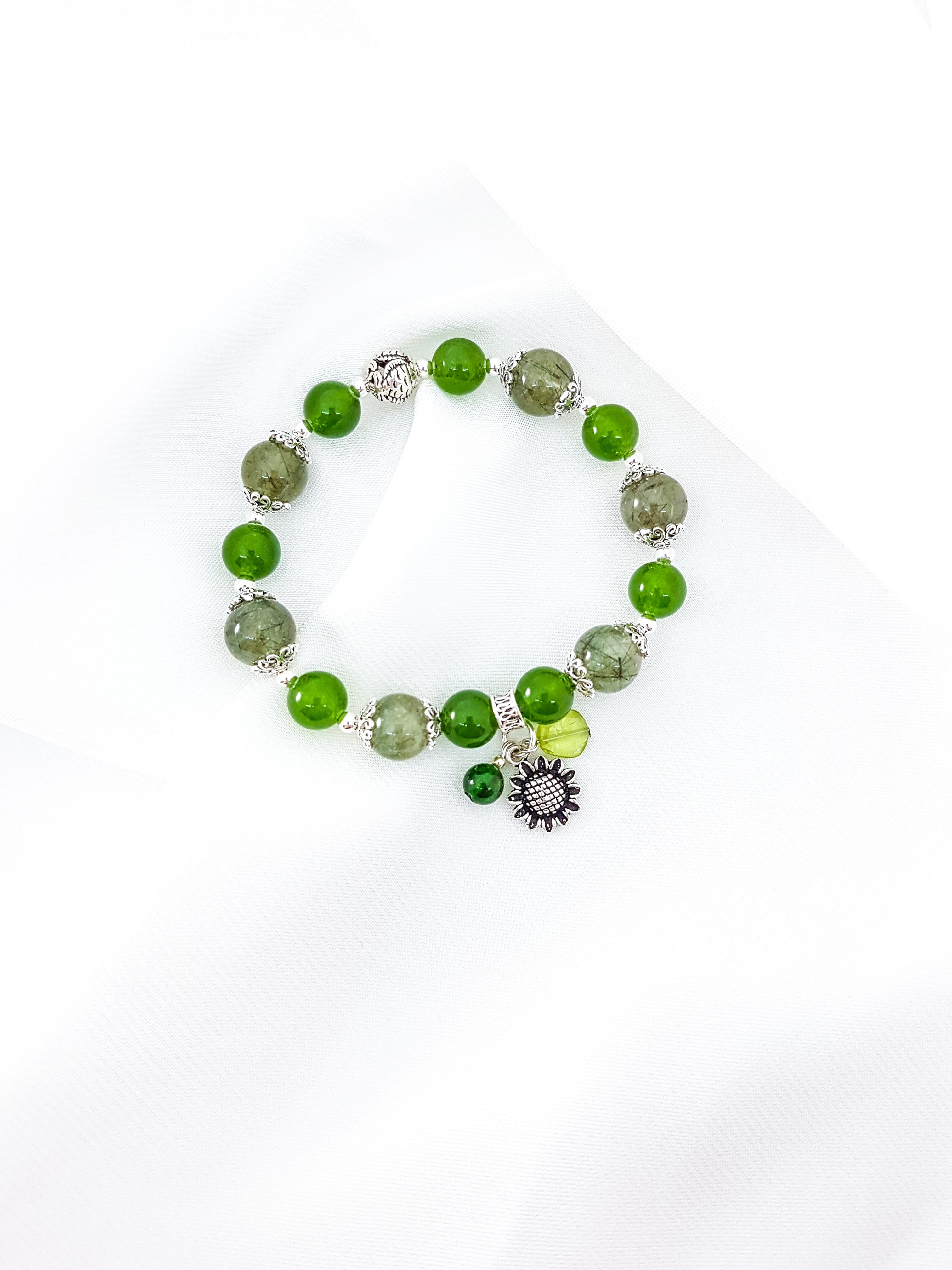 Vòng Thạch Anh Ưu Linh Xanh Phối Hoa Thạch anh xanh Đá Thạch Anh Xanh (Green Aventurine) còn được gọi là “Đá của Cơ Hội”, nó được cho là loại đá mang lại may mắn
