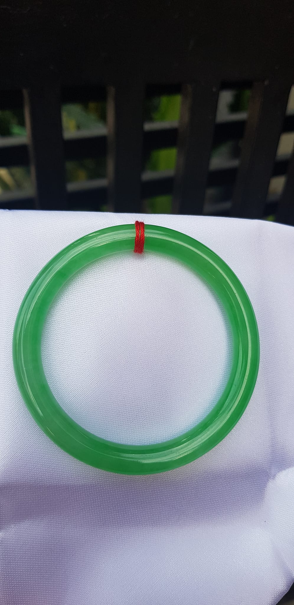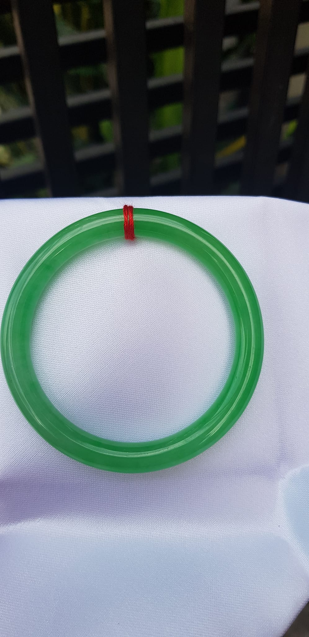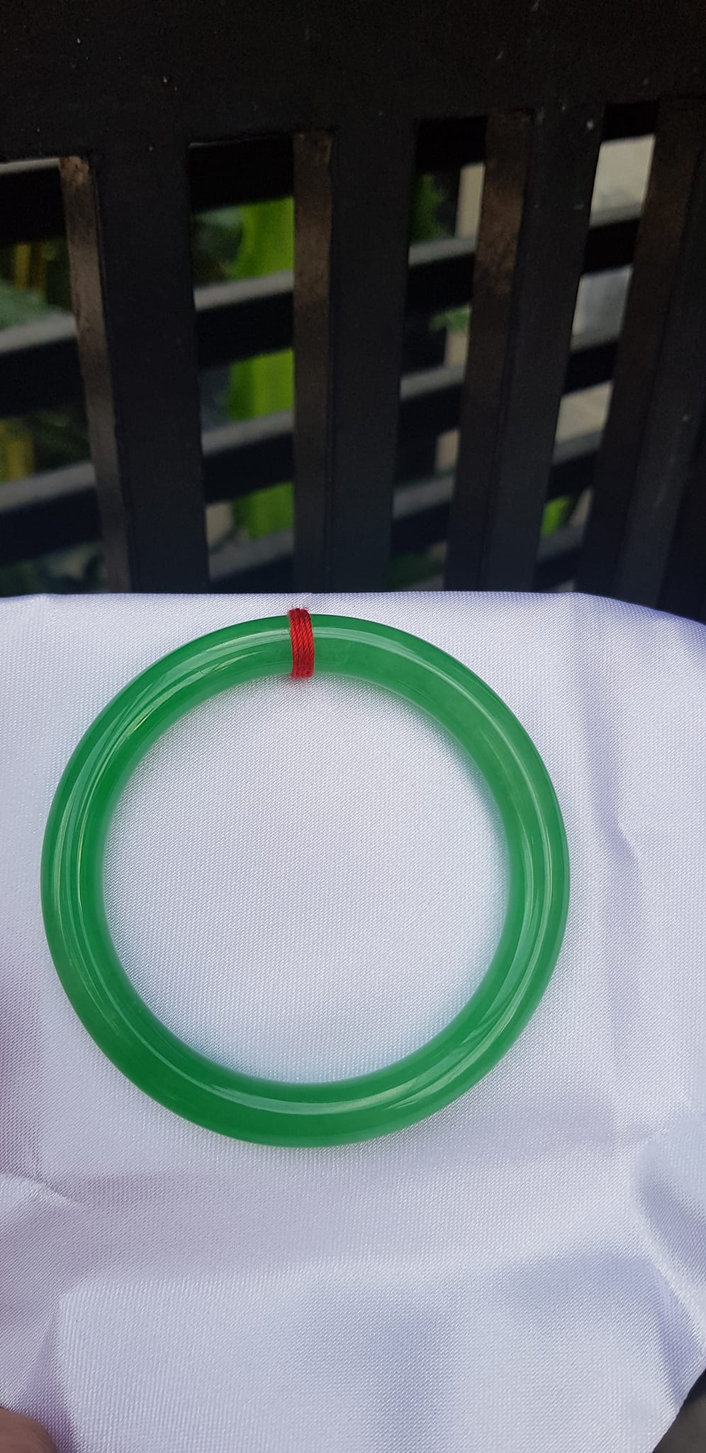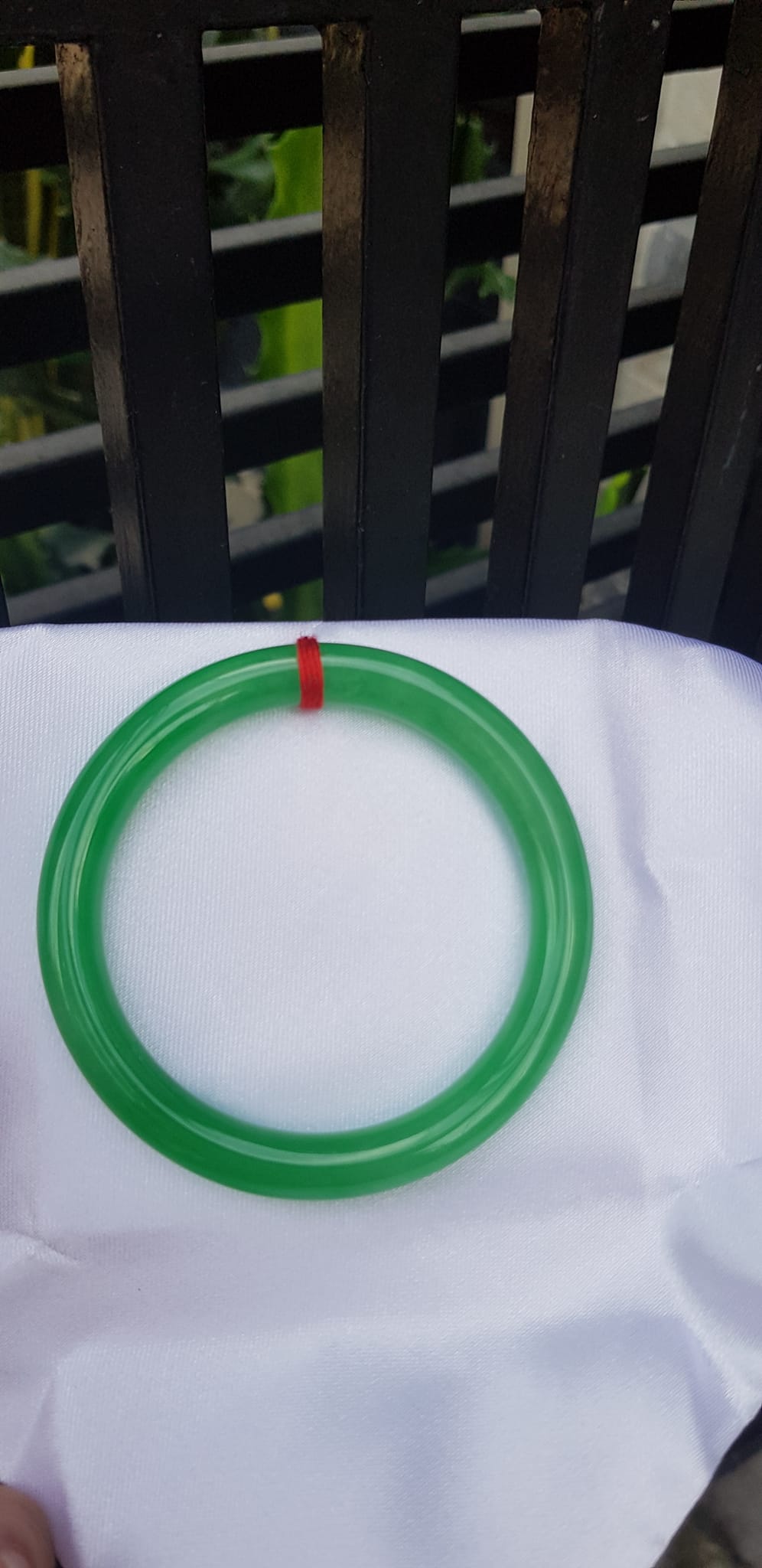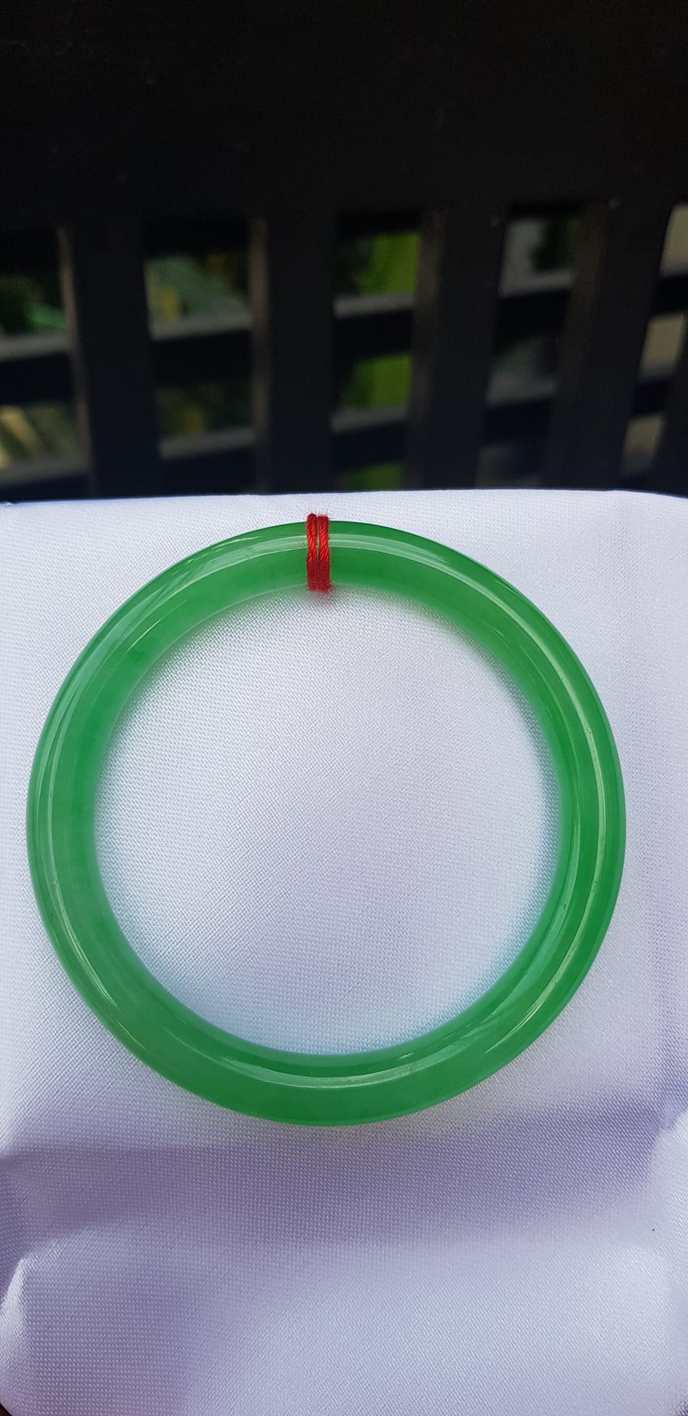 Vòng cẩm thạch Đ Lý 52mm x dầy 7,8mm màu xanh lá tươi hợp Nữ mệnh Mộc mệnh Hỏa 52kg - 56kg đeo ạ