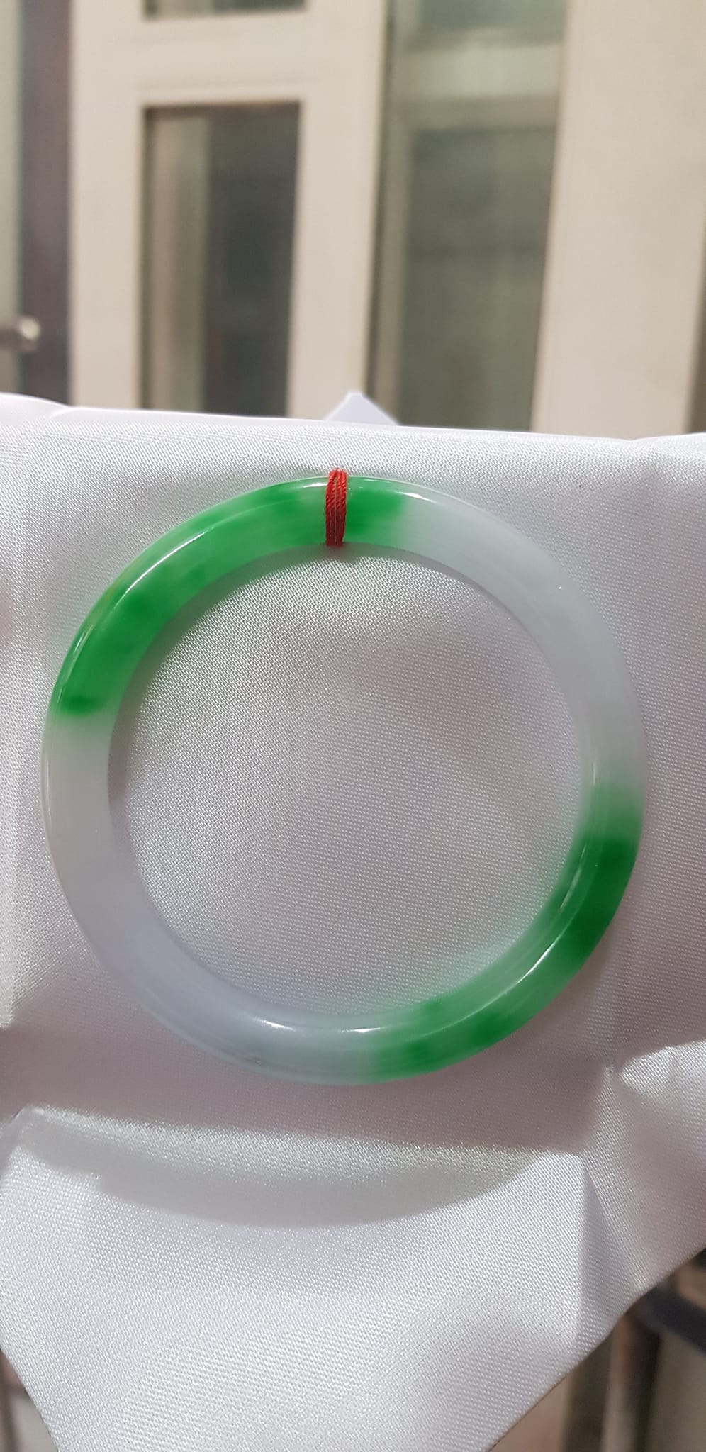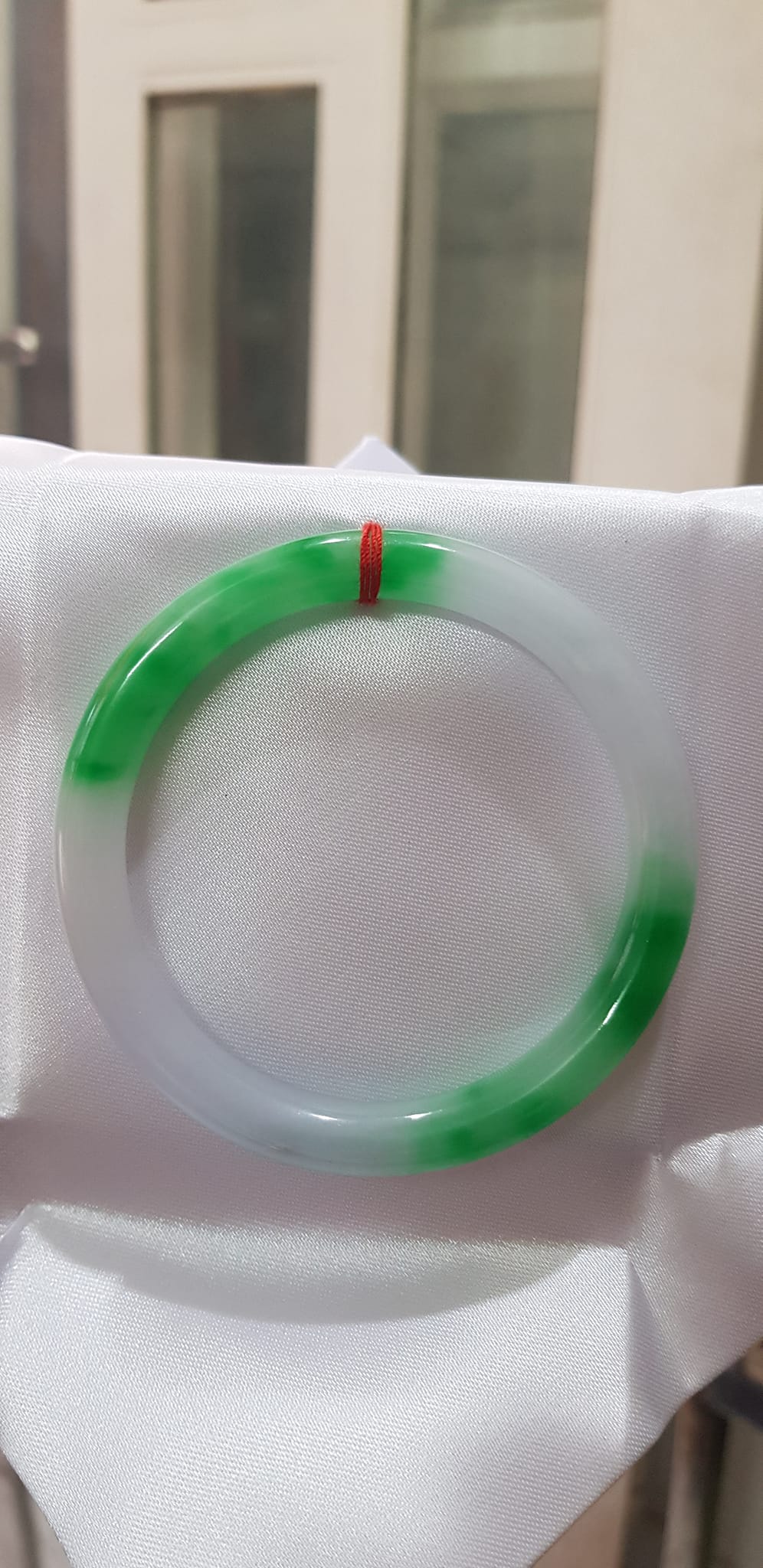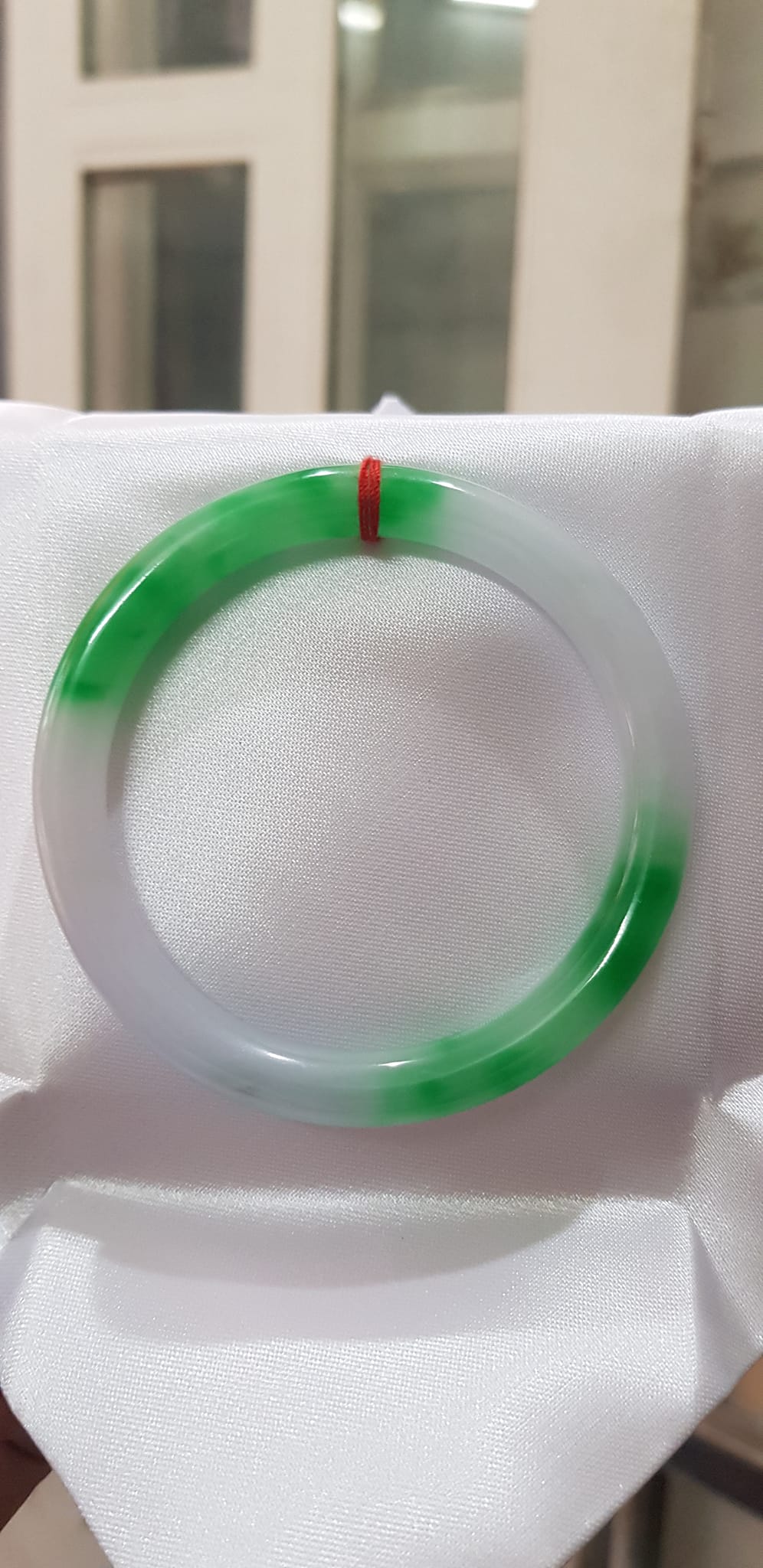 Vòng tay đá Cẩm Thạch mới TR Lý 51mm x cọng 6,2mm Màu Xanh lý 2 bên trắng đều đẹp nữ 50kg - 53kg đeo