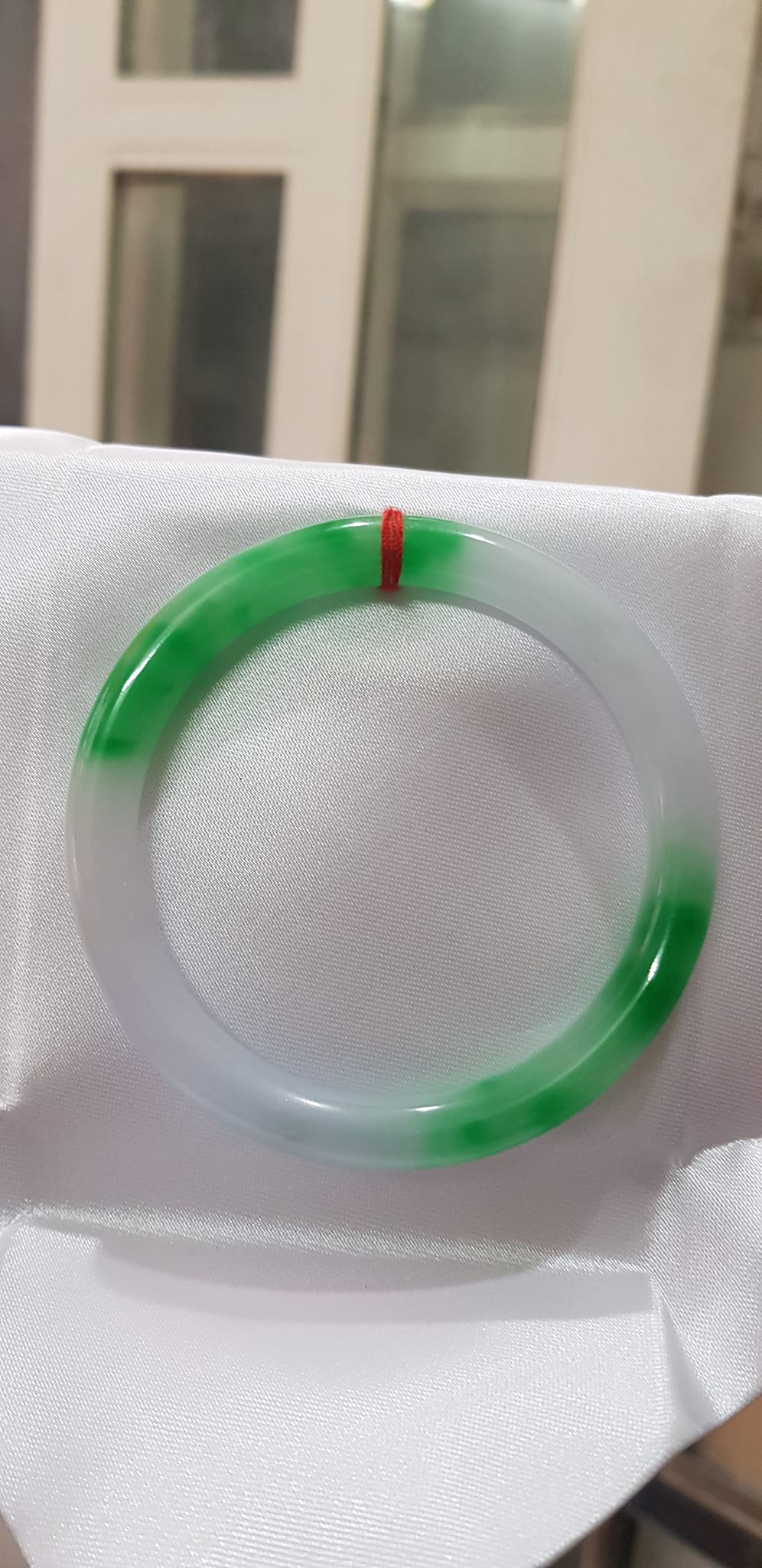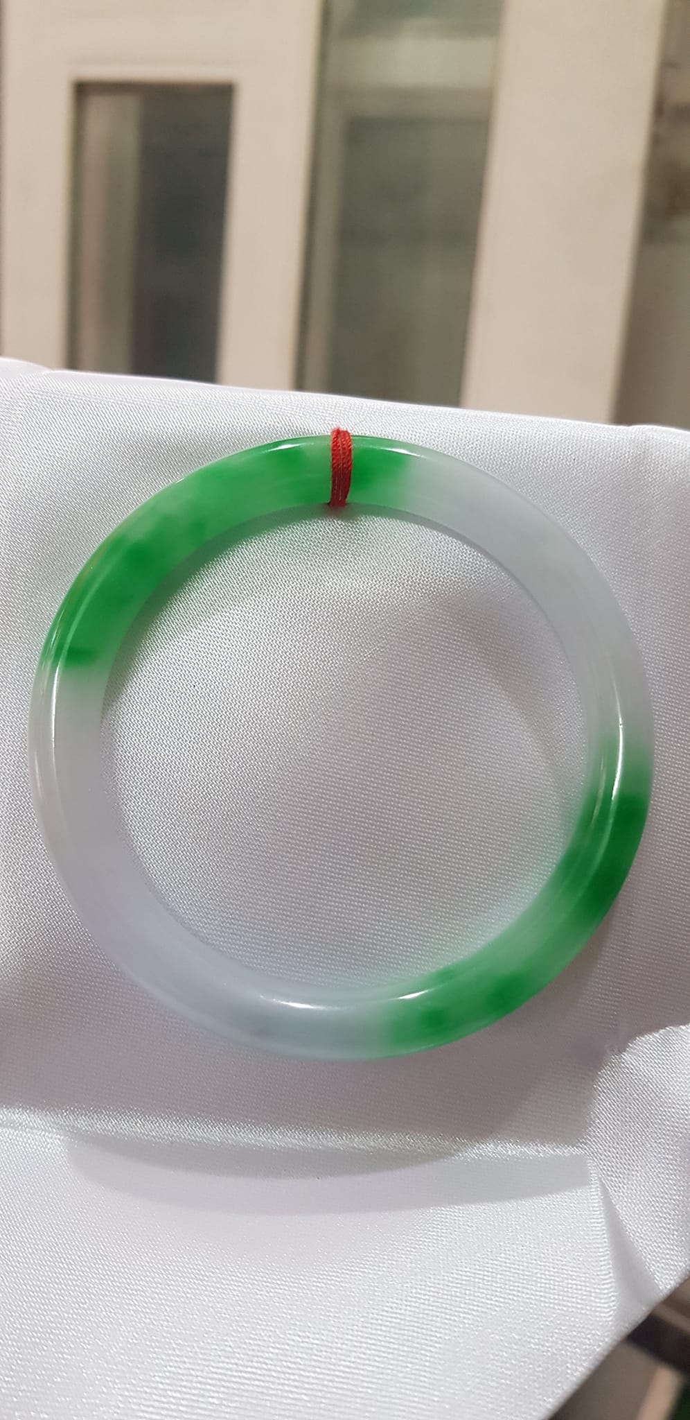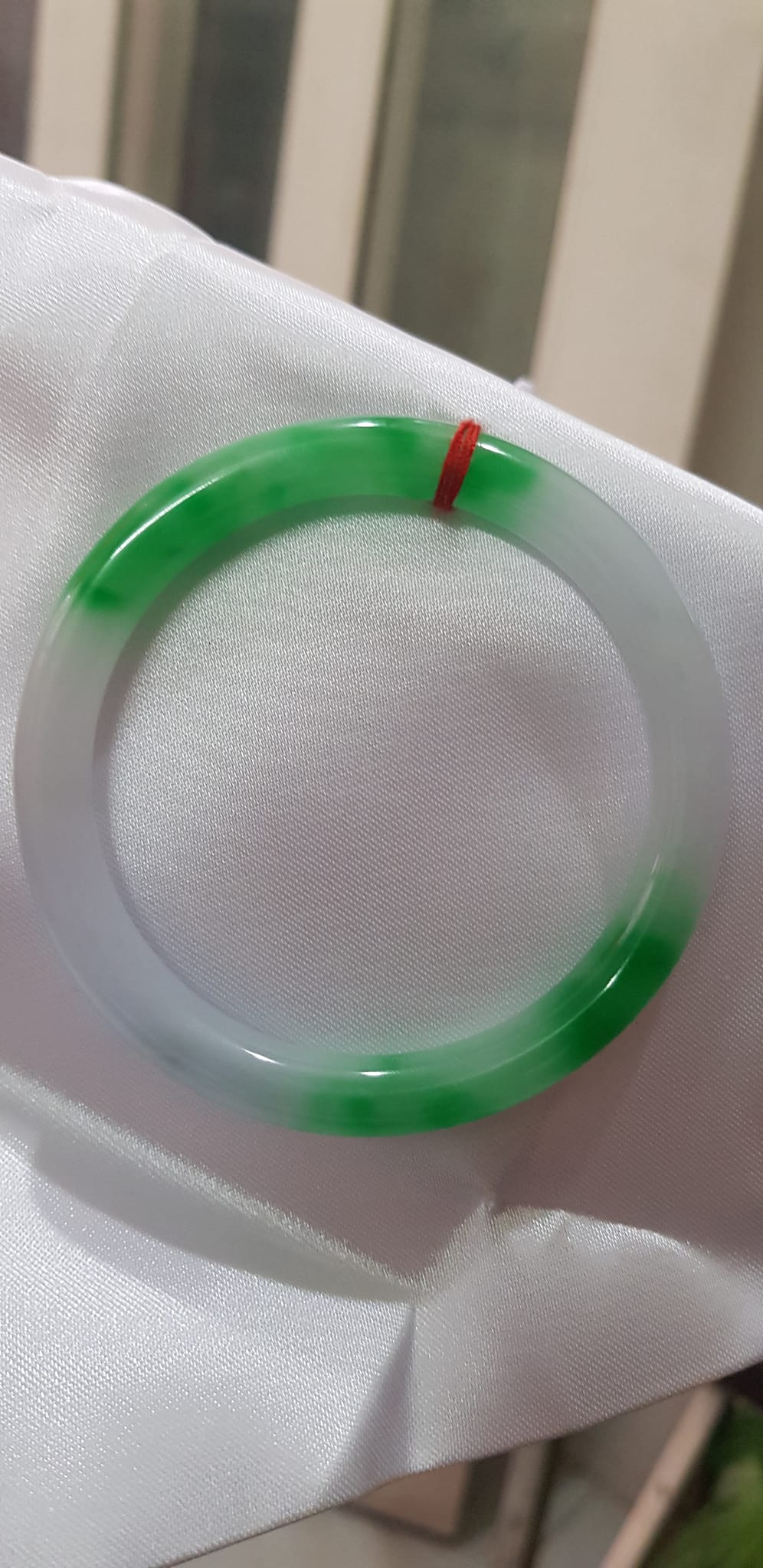 Vòng tay đá Cẩm Thạch mới TR Lý 51mm x cọng 6,2mm Màu Xanh lý 2 bên trắng đều đẹp nữ 50kg - 53kg đeo