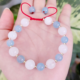 ✨Vòng tay Nữ phong thủy đá mã não trắng mix đá Aqua và bi bạc dễ thương