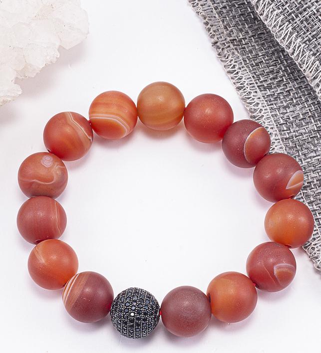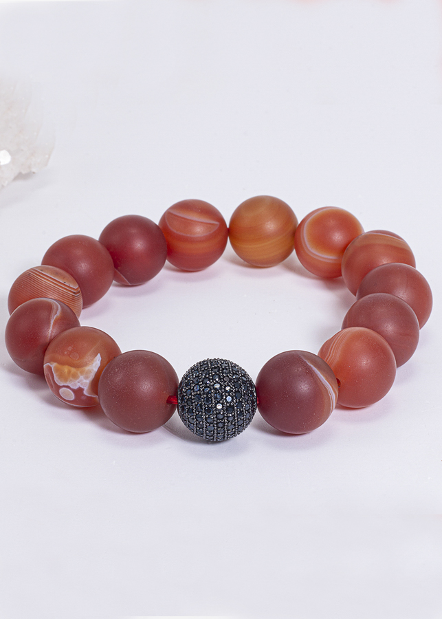 ✨Vòng Tay Phong Thủy Nam Đá Mã Não Đỏ Nhám Phối Charm Cầu Đính Đá (14mm) Mệnh Hỏa, Thổ Ngọc Quý Gemstones
