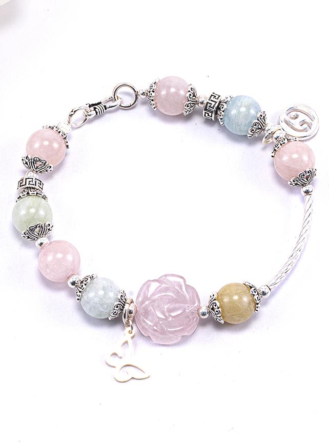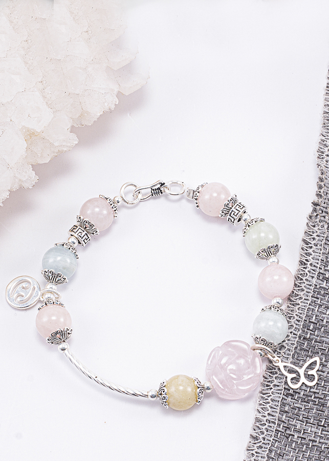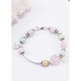 ✨Vòng Tay Phong Thủy Nữ Đá Beryl Phối Hoa Mẫu Đơn (9mm) Nhiều Mệnh Ngọc Quý Gemstones