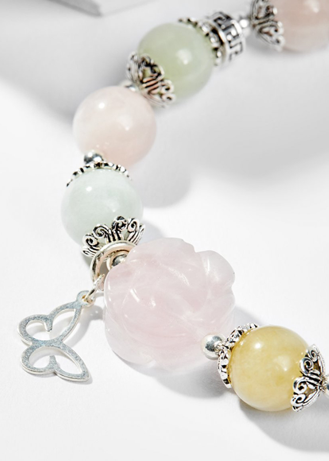 Vòng tay đá thiên nhiên phối hoa mẫu đơn Ngọc Quý Gemstone Đá cẩm thạch là một trong những dòng đá đặc biệt rất được ưa chuộng tại các khu vực Châu Á, đặc biệt