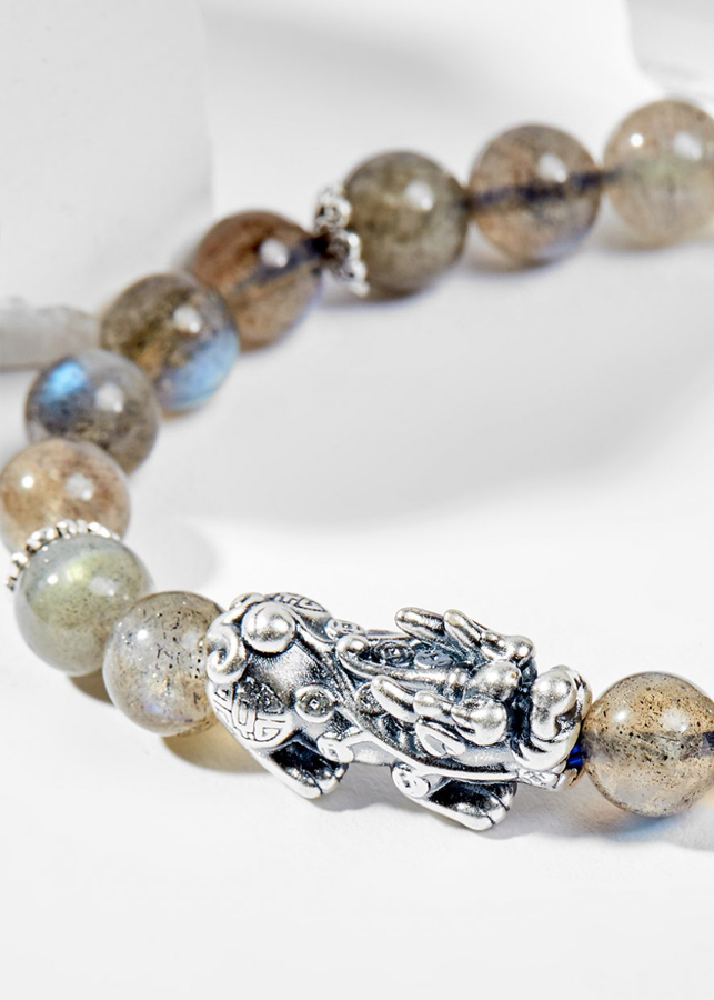 Vòng Tay Phong Thủy Nữ Đá Labradorite Phối Charm Tỳ Hưu Bạc (6mm) Nhiều Mệnh