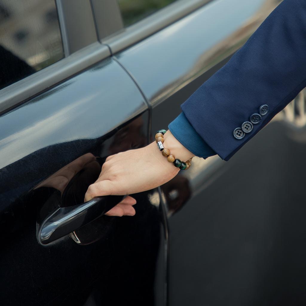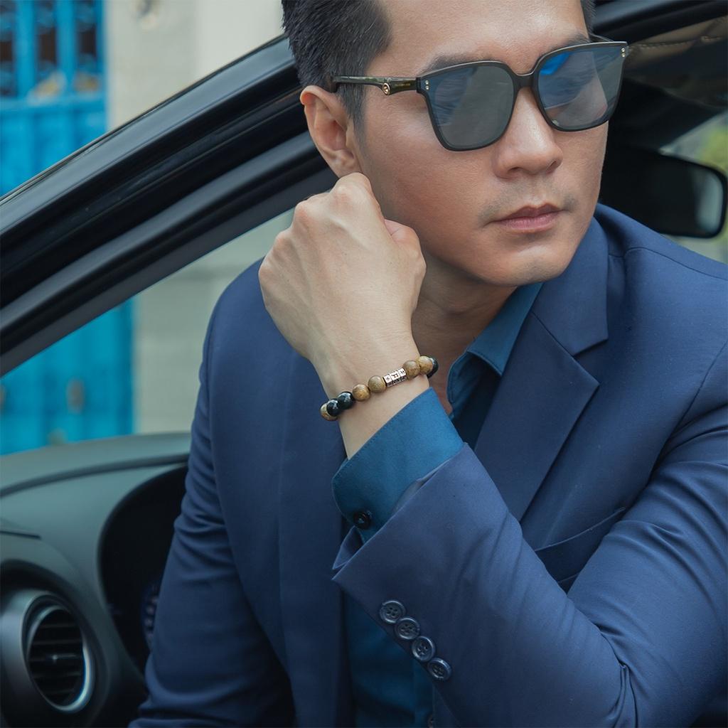 ✨Vòng tay trầm hương mix đá mắt hổ xanh lá charm trụ chữ phạn cao cấp chính hãng 2VTH074 udumbara
