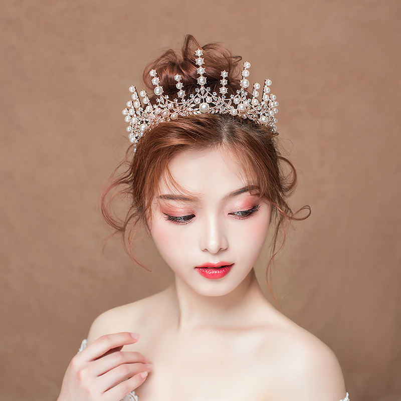 Vương miện hạt ngọc châu dáng cao thích hợp trang điểm cô dâu trong ngày cưới, ngày ăn hỏi, chụp ảnh cưới, thích hợp trang điểm make up dạ tiệc dạ hội