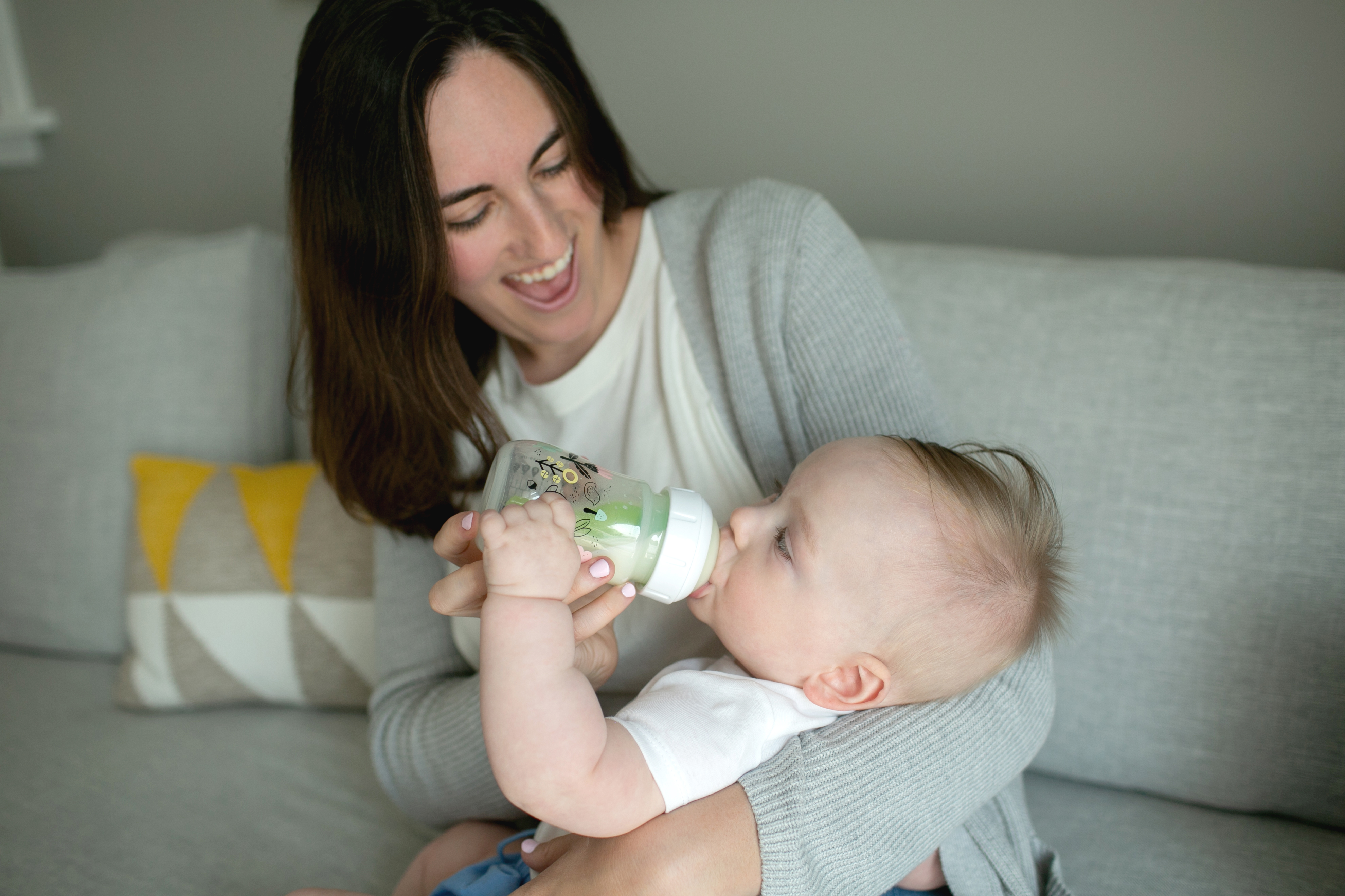 " - Chịu nhiệt: Chất liệu thủy tình thiết kế tự nhiên chịu nhiệt, giúp bạn có thể bảo quản sữa trong ngăn đông tủ lạnh, hâm nóng, & cả tiệt trùng. - Bé dễ