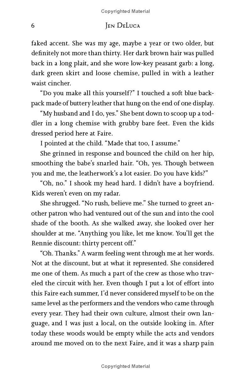 Stacey put her life on hold when she stayed in Willow Creek to care for her sick mother. But it's been years now. Even the local Renaissance Faire, where she spends summer pouring drinks and flirting with patrons, is losing its attraction. She vows to have her life figured out by next summer's Faire. It's past time she found The One.