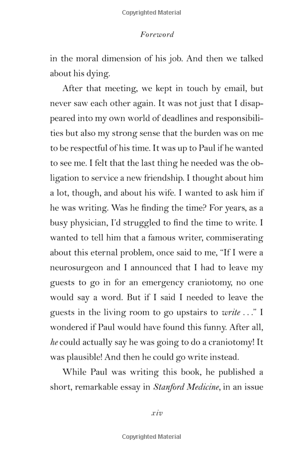 At the age of thirty-six, on the verge of completing a decade’s training as a neurosurgeon, Paul Kalanithi was diagnosed with inoperable lung cancer. One day he was a doctor treating the dying, the next he was a patient struggling to live.