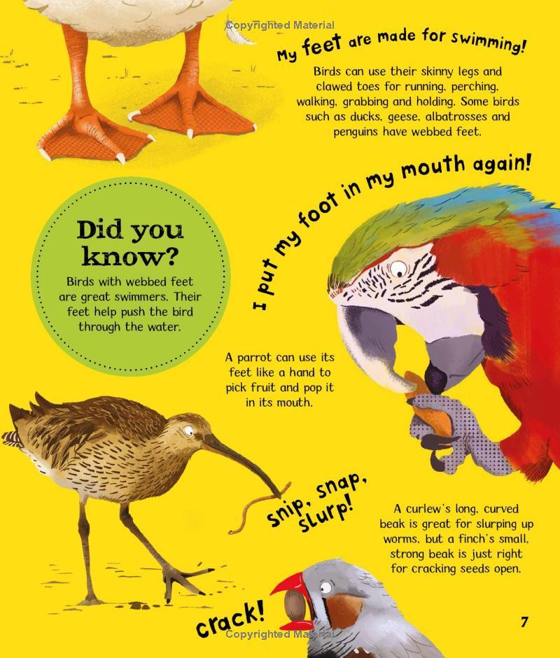 Which bird can fly backwards? How do penguins keep warm? Does an ostrich really bury it's head in the sand? Find out the answers to these questions, and lots more, in this book featuring dancing, hooting, running and pecking birds.