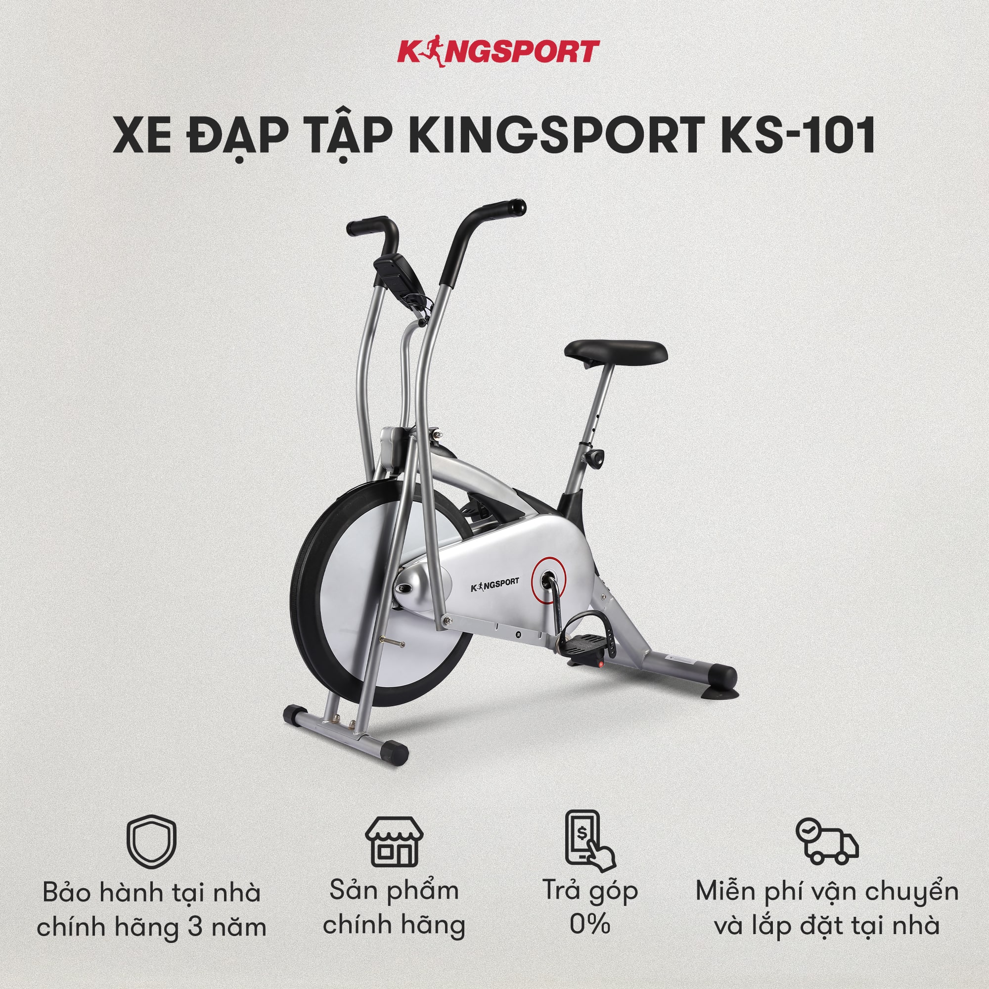 ✨Xe đạp tập KINGSPORT KS-101 tập luyện toàn thân, tích hợp đồng hồ đo lường chỉ số, cân nặng phù hợp từ dưới 75kg