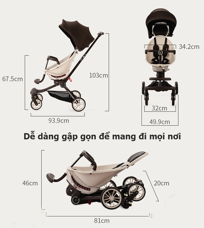 Chào mừng ba mẹ đến với thế giới của sự tiện nghi và an toàn tối ưu cho bé yêu cùng xe đẩy vừa nằm vừa ngồi cho bé Luxury MySun cao cấp! MySun tin rằng sản phẩm này không chỉ là một chiếc xe đẩy cho em bé sơ sinh thông thường mà còn là người bạn đồng hành đáng tin cậy trong suốt những năm tháng đầu đời của bé, từ sơ sinh đến 4 tuổi. Với thiết kế thông minh, khả năng gấp gọn tiện lợi và chất liệu cao cấp, xe đẩy cho trẻ sơ sinh MySun Luxury mang đến trải nghiệm tuyệt vời cho ba mẹ và bé. Từ những chuyến đi dạo công viên, đến những buổi mua sắm hay du lịch, chiếc xe đẩy cho em bé gấp gọn Luxury giúp ba mẹ dễ dàng di chuyển mà không lo lắng về sự an toàn hay thoải mái của bé. MySun còn thiết kế đặc biệt để sản phẩm phù hợp với xe đẩy cho em bé từ 1 2 3 4 5 6 tháng tuổi và các bé lớn hơn, đảm bảo sự nâng đỡ êm ái và an toàn tuyệt đối.   ƯU ĐIỂM XE ĐẨY VỪA NẰM VỪA NGỒI CHO EM BÉ SƠ SINH 1 2 3 4 TUỔI LUXURY MYSUN     1. Khung xe đẩy cho em bé làm bằng thép carbon cao cấp chịu tải 25kg. 2. Bánh trước lò xo, xoay 360 độ giúp xe đẩy em bé chạy êm ái. 3. Bánh sau xe đẩy có khóa cố định cho em bé vừa nằm vừa ngồi an toàn. 4. Xe đẩy gấp gọn hay mở ra chỉ bằng 1 thao tác 1 tay đơn giản. 5. Xe có 2 lớp vải, lớp ngoài Oxford siêu bền, lớp trong poly thoáng khí. 6. Xe đẩy MySun có đệm lót cao cấp cho em bé từ 1 2 3 4 5 6 tháng tuổi nằm êm ái. 7. Mái che xe đẩy gấp gọn vải oxford chống nước chống tia UV cho em bé. 8. Xe đẩy vừa nằm cho bé sơ sinh, vừa ngồi cho trẻ em 1 2 3 4 tuổi. 9. Đai 5 điểm an toàn cho em bé sơ sinh nằm và trẻ 1 2 3 4 tuổi ngồi. 10. Có khay đựng cốc, túi sau, giỏ đựng đồ cho ba mẹ và bé tiện lợi.