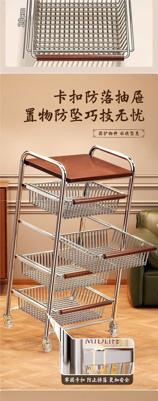 ✨Xe Đẩy Kệ Để Đồ Đa Năng Nhiều Ngăn Tầng Có Ván Gỗ Retro Vintage – Khung Kim Loại Chắc Chắn, Kệ Trang Trí Nhà Bếp Phòng Khách - HÀNG CHÍNH HÃNG MINIIN