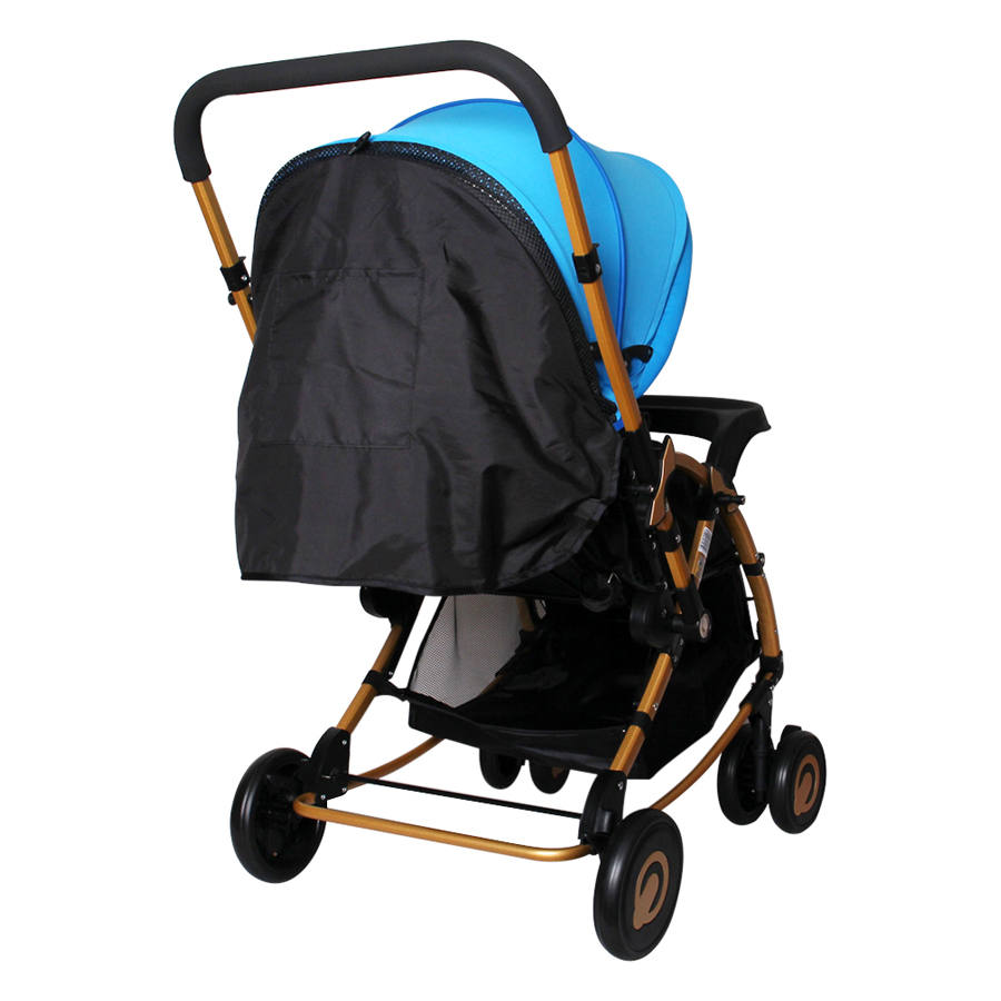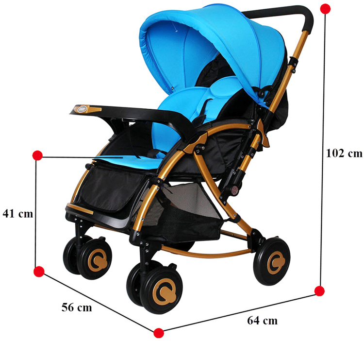 Xe được thiết kế là xe đẩy siêu nhẹ và gọn. Có thêm mái che ở bên trên.