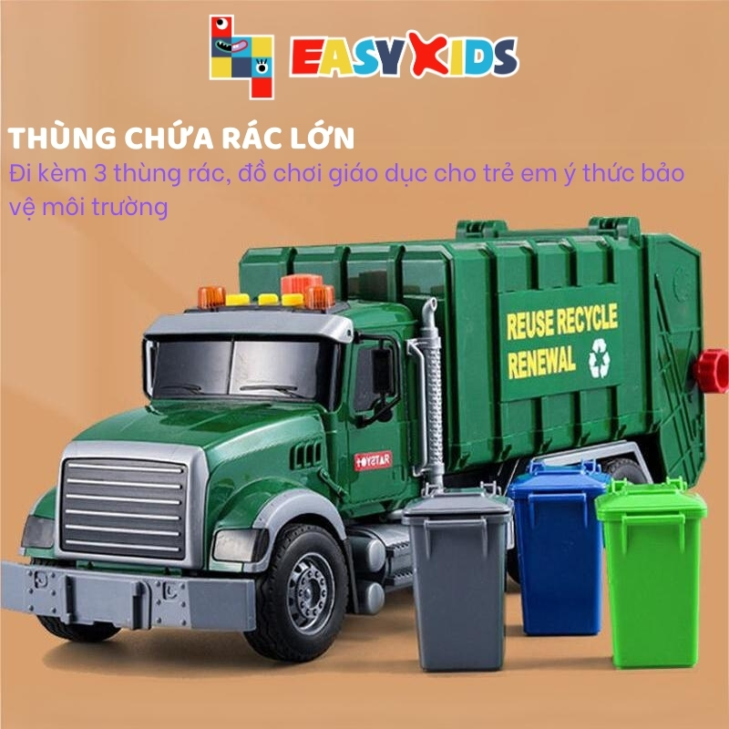 ✨Xe Rác Đồ Chơi, Xe Chở Rác Đổ Rác Cỡ Lớn Cho Bé Có Đèn Nhạc
