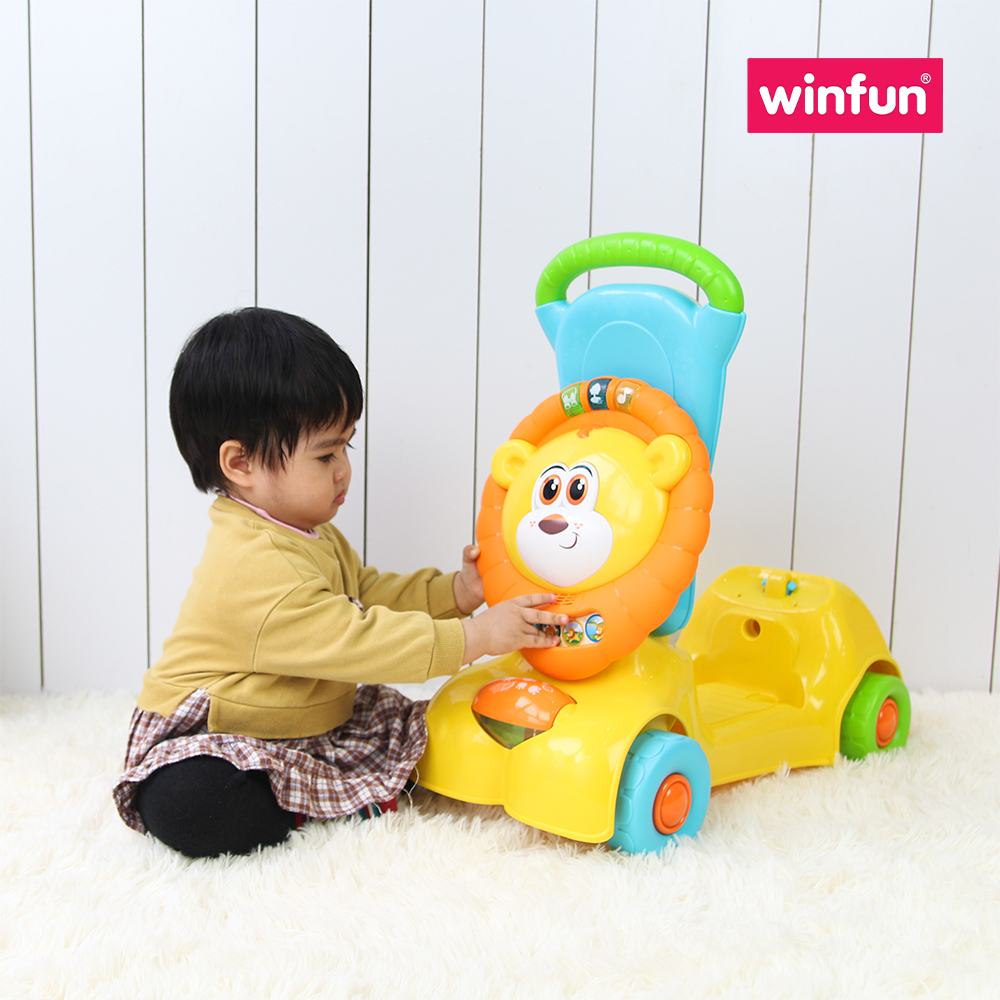 Xe tập đi sư tử kết hợp chòi chân, scooter Winfun 0855 phù hợp 3 giai đoạn phát triển của bé: Tập đứng và đẩy, ngồi và chòi chân, vừa đi vừa đẩy xe bằng