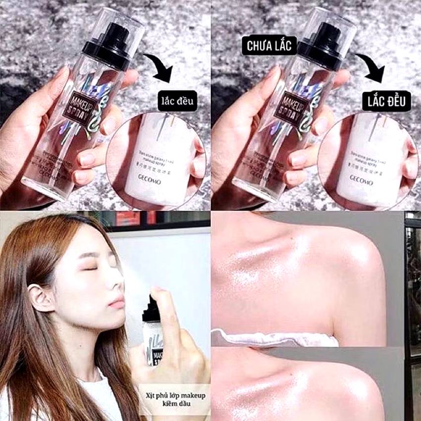 Tên sản phẩm: Xịt khóa Makeup Star Flash Make Up Spray 8 Hours Wear Thương hiệu: Star Flash Dung tích: 100ml Xịt khóa Makeup Star Flash Make Up Spray 8 Hours Wear chứa niacinamide, xịt giúp cố định lớp make up, giúp giữ lớp make up lâu hơn, kiểm soát dầu chống trôi màu xuống màu, đồng thời dưỡng ẩm cho da, không gây bết dính.     ***Hướng Dẫn Sử Dụng: Xịt giữ makeup cố định lớp trang điểm bắt sáng lâu trôi Lắc đều đến khi thấy chai từ trong suốt thành màu trắng nhũ chảy, để đầu xịt cách mặt 30cm, xịt đều. đợi khô tự nhiên hoặc dùng khăn giấy sạch thấm bớt lượng nước thừa. Có thể dùng xịt trước khi make up giúp da đủ ẩm ăn nền hơn, hoặc sau khi đánh nền giúp lớp make up dễ dàng lên màu hơn, hoặc dùng bước cuối cùng sau khi hoàn tất make up giúp cố định lớp make up và hiệu quả da sáng bóng hơn.     Nhờ có Xịt giữ makeup công cuộc make up của chị em được nâng lên một tầm cao mới. Các lớp trang điểm giờ đây có thể giữ bền bỉ suốt nhiều giờ thay vì loang lổ ngay khi gặp dầu và mồ hôi. Những chai xịt giữ lớp trang điểm này khiến bạn yên tâm hơn hẳn trong những sự kiện quan trọng như đám cưới, tiệc tùng và đặc biệt là khi đi bơi.   Em này đặc biệt dành cho những ai thích lớp nền căng bóng vì có kèm theo 1 lượng nhũ nhẹ để tạo hiệu ứng Glow sương sương Hàn Quốc nha!