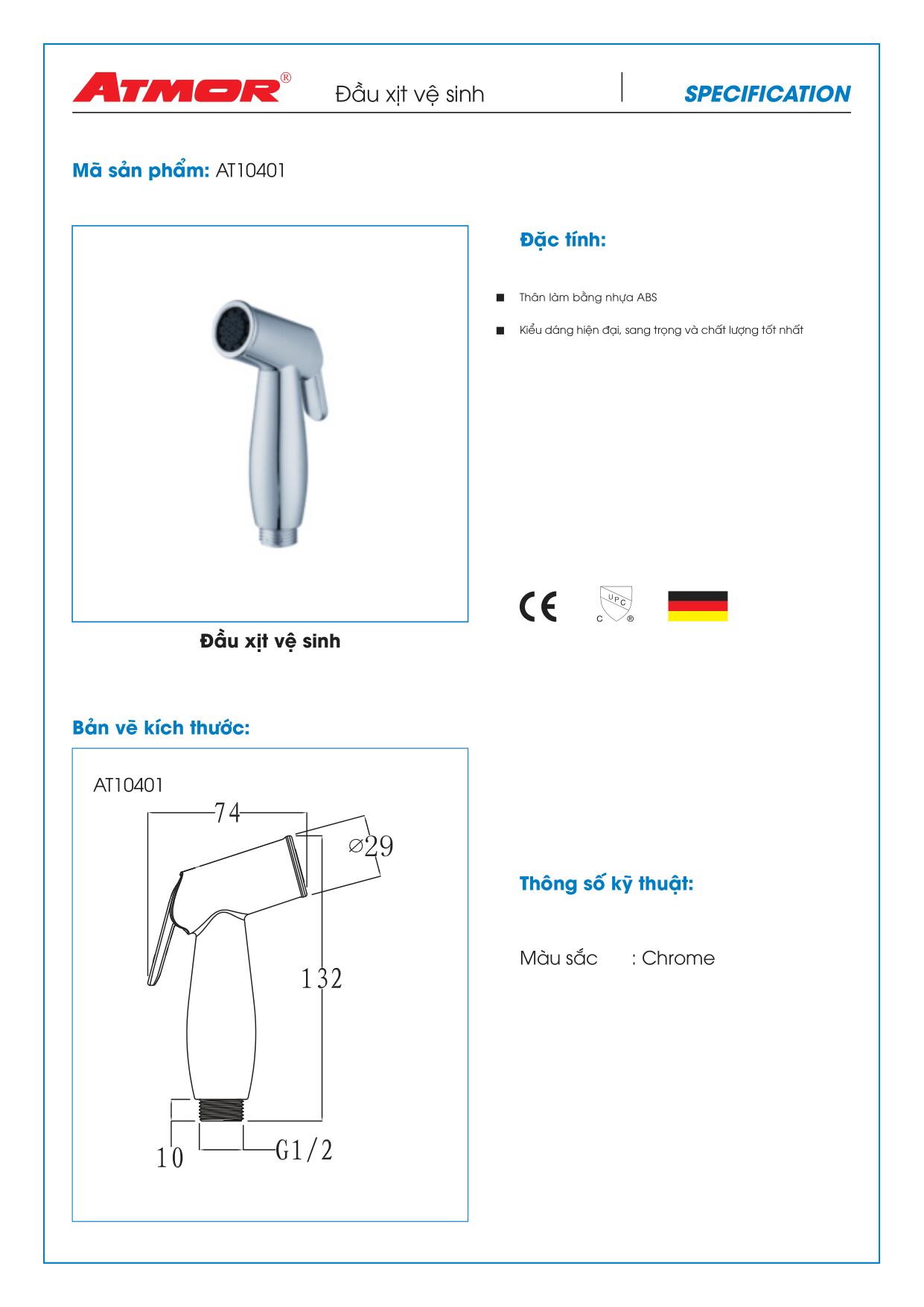 #217|🔵Vòi Xịt Vệ Sinh,Vòi Xịt Phụ Atmor AT-10023C,nhựa mạ Chrome,Inox #review