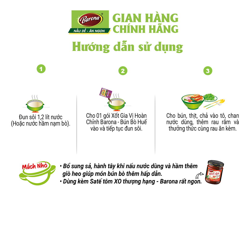 Gia Vị Bún Bò Huế Barona 110g tươi ngon chuẩn vị không cần nêm nếm Gói Gia Vị Nấu Bún Bò Huế, Xốt Gia Vị Hoàn Chỉnh Barona Bún Bò Huế 110g là công thức